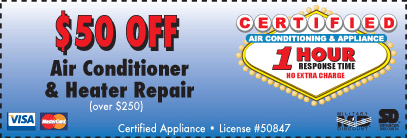 At Certified Appliance, we are the experts for all of your air conditioner service needs. We offer repairs, service, & installations. We have a one hour response time and fully stocked trucks. Our expert technicians can complete the repair in a timely fashion, which means you will be cool before you know it! Best of all, we do not charge extra for our speedy response time. We can typically install new air conditioners the same or the next day. Other companies may schedule you days out, and take all day to complete their work, but we know you it’s hot out and you don’t have time to wait. Your time is valuable, so we work efficiently and get the job done as quickly as possible. We get it right the first time, and we offer competitive prices!